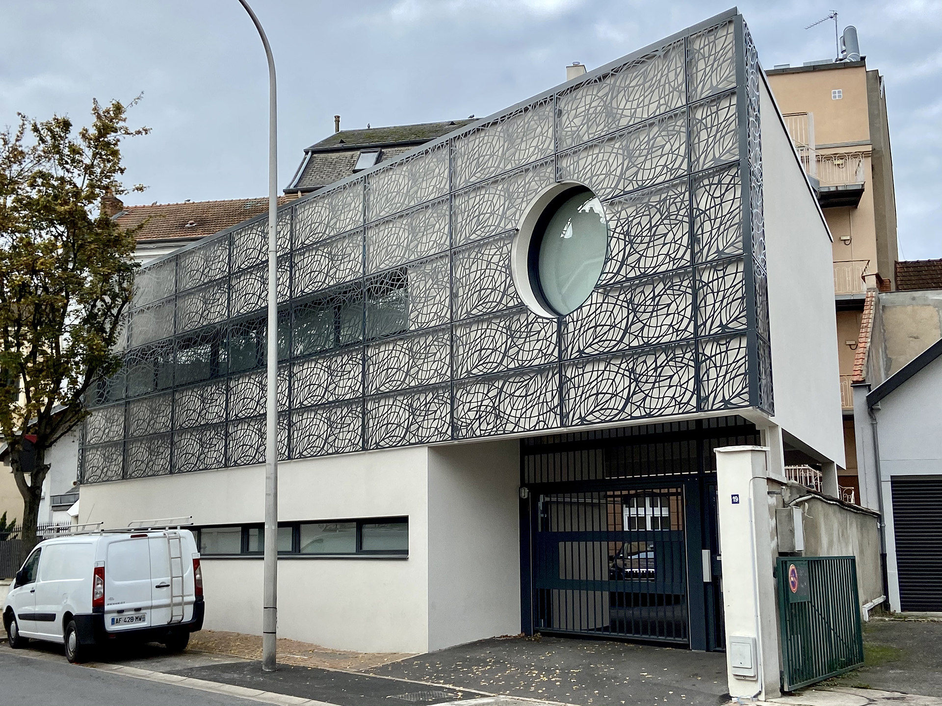 S’inscrivant dans la droite ligne de l’architecture plurielle Vichyssoise, ici, la façade principale est revêtue d’une mantille métallique, évoquant l’esthétisme féminin.