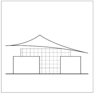 Le projet s’implante au centre du terrain comme un cirque. Les différentes fonctions s’articulent entre elles et l’ensemble est recouvert d’un vaste chapiteau qui déborde largement des façades rajoutant au programme des espaces de convivialités extérieurs abrités. Le point culminant du chapiteau couvre la salle de spectacle ce qui donne du volume à l’ensemble. Les aménagements extérieurs relient l’ensemble au Casino attenant permettant de donner une identité à ce nouveau pôle de loisirs que devront privilégier les curistes.